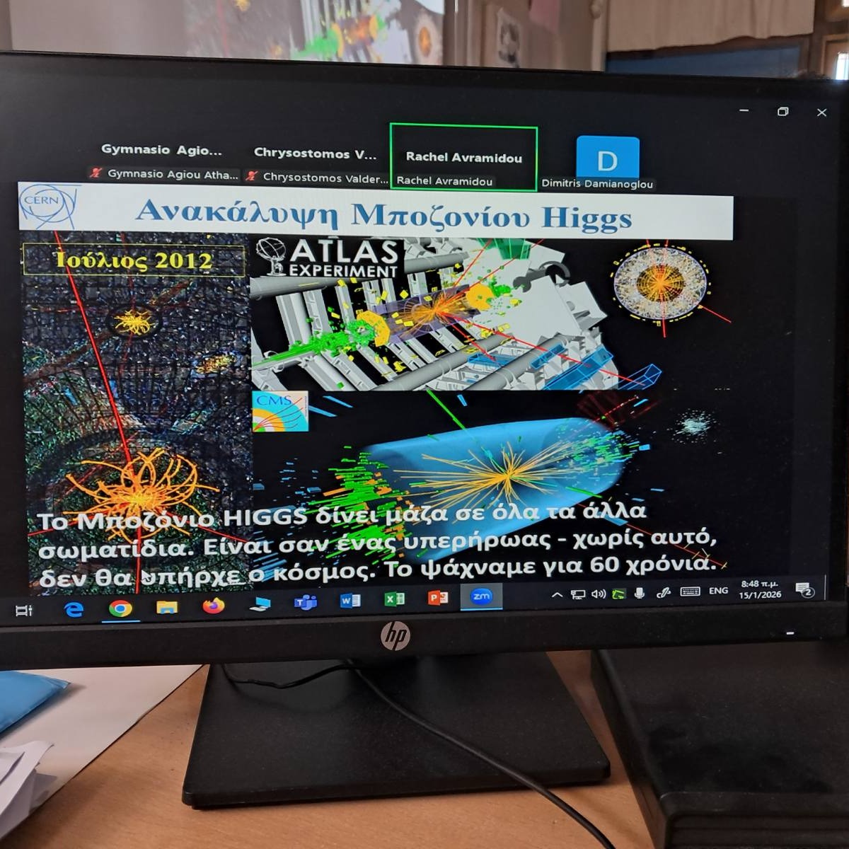 Στις 15 Ιανουαρίου 2026 οι μαθητές/μαθήτριές μας συμμετείχαν σε online ξενάγηση στο πείραμα ATLAS του CERN. Εξερεύνησαν πώς ανιχνεύονται οι συγκρούσεις σωματιδίων, γνώρισαν τον ρόλο των ανιχνευτών και είδαν πώς αναλύονται μεγάλα δεδομένα στη φυσική υψηλών ενεργειών.