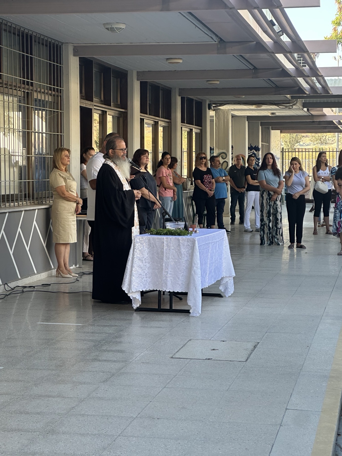 Στις 09 Σεπτεμβρίου 2025 πραγματοποιήθηκε η καθιερωμένη τελετή Αγιασμού για την έναρξη της σχολικής χρονιάς 2025-2026. Οι μαθητές/τριες και οι καθηγητές/τριες παρακολούθησαν την τελετή με αίσθημα κατάνυξης και ευλάβειας. Ο ιερέας της ενορίας μας, αγίασε τους μαθητές/τριες και καθηγητές/τριες και ευχήθηκε σε όλους μια ευλογημένη και αποδοτική σχολική χρονιά.