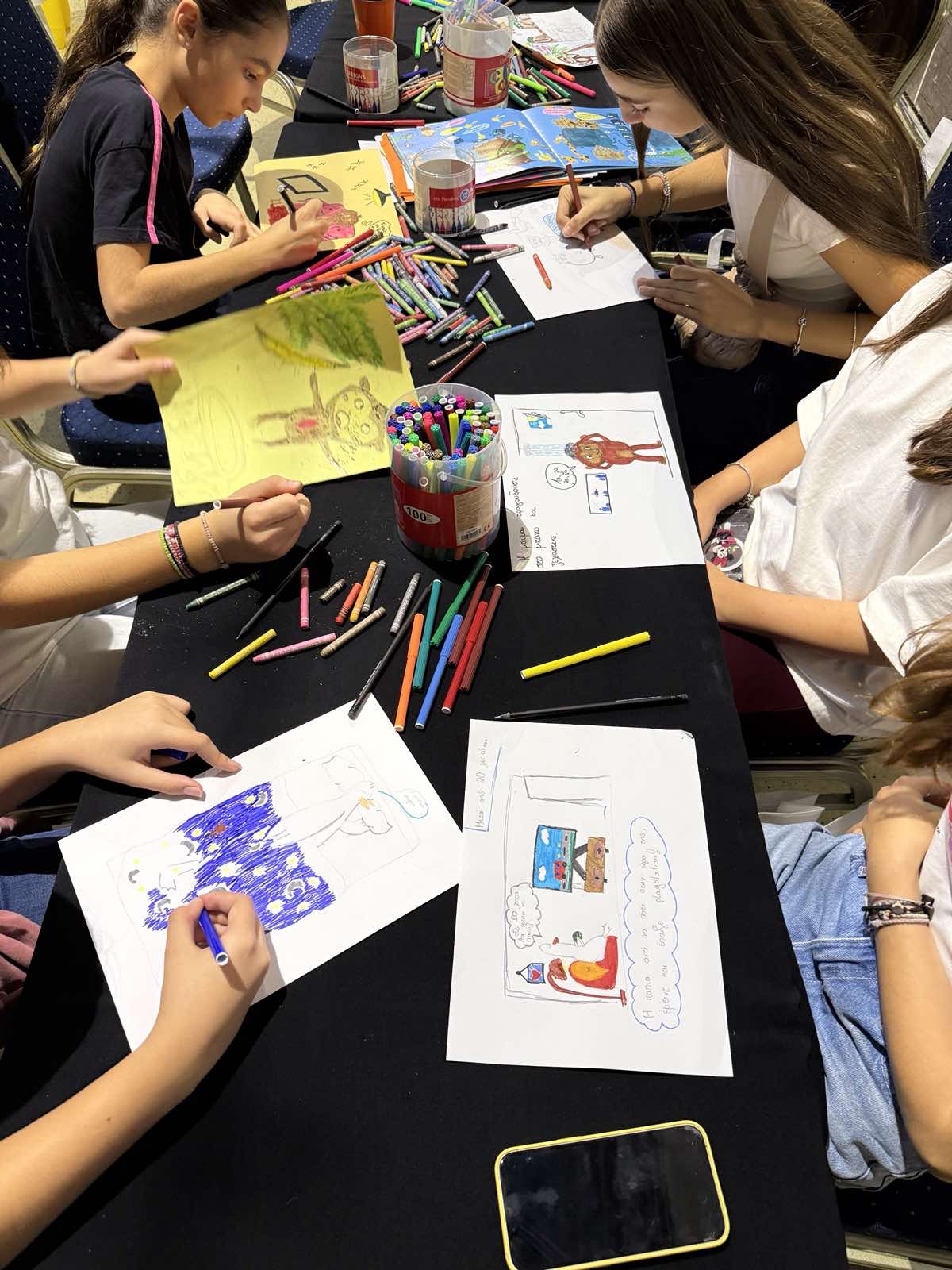 Οι μαθητές επισκέφθηκαν την Έκθεση και έλαβαν έπαινο συμμετοχής, αναμνηστικό δώρο και είχαν την ευκαιρία να γνωρίσουν την εικονογράφο Μυρτώ Δεληβοριά από κοντά και να συμμετέχουν σε εργαστήριο εικονογράφησης μαζί της την Κυριακή 23 Νοεμβρίου. Τα σχέδια των παιδιών εκτέθηκαν καθόλη τη διάρκεια της Έκθεσης στους Χαρουπόμυλους Λανίτη στη Σκηνή 2 – Παιδική και Νεανική Σκηνή.